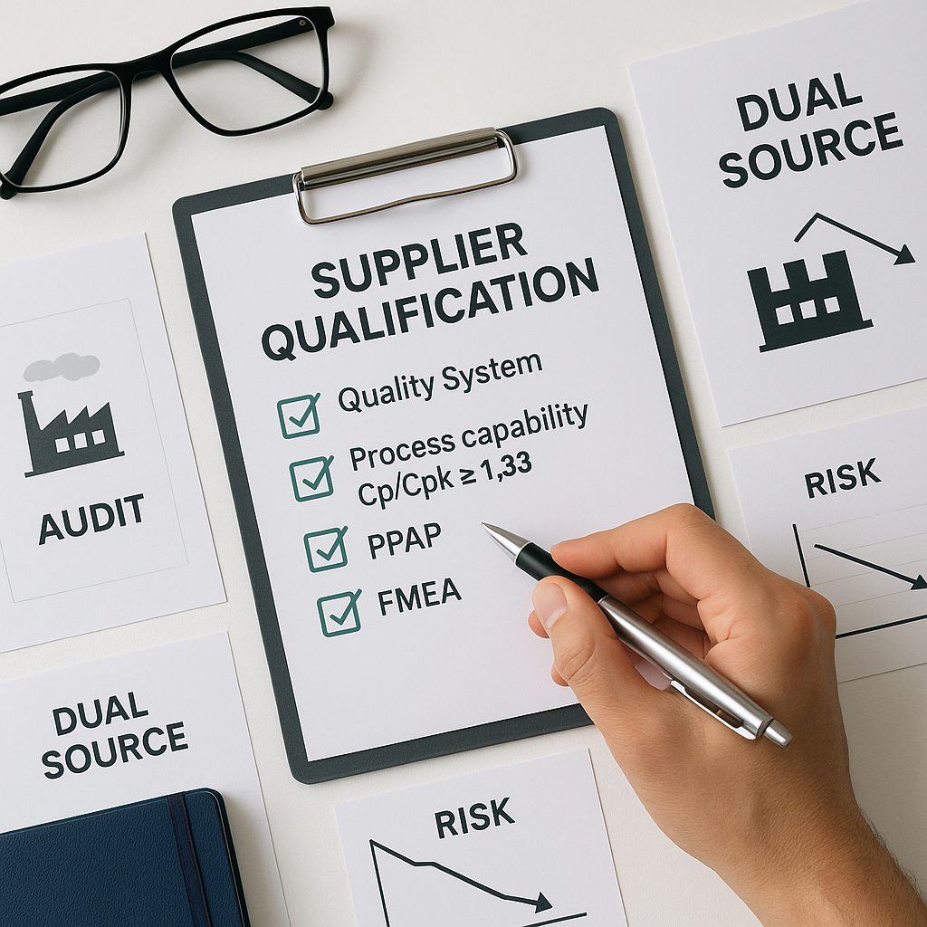 Audits, capability checks, and dual-sourcing to reduce supply risk.