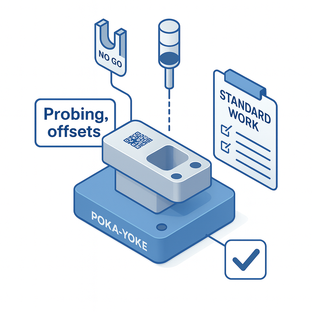 Probing, offsets, and counters prevent drift, scrap, and breakage.